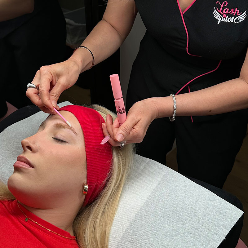 At Lash Pilot, we use professional-grade brow tints specially formulated for use on both brow hair and skin, giving a softly filled-in effect that fades evenly over time. Your esthetician will tailor the shade to your hair color, skin tone, and personal preference.